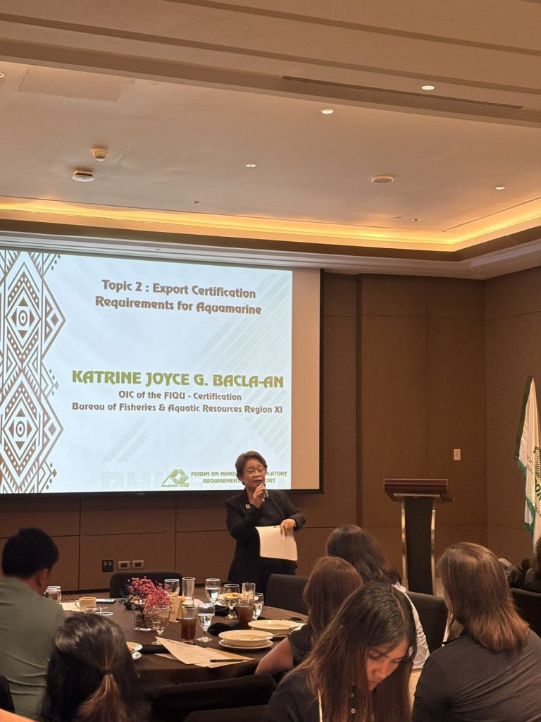 In her presentation, Engr. Iris Kay L. Cortez of the Mines and Geosciences Bureau emphasized the need for strict adherence to documentation standards in the minerals and ores sector. Similarly, BFAR’s Katrine Joyce G. Bacla-an addressed sustainability and certification protocols for aquamarine product exports.